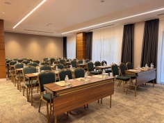 Tiyatro düzeninde 70 kişi, Sınıf düzeninde 36 kişi, U masa düzeninde 25 kişi, Yuvarlak masa (banquet) düzeninde 40 kişi, Blok masa düzeninde 50 kişi, Kokteyl düzeninde 50 kişi kapasiteye sahiptir. Farabi Meeting Room, iş toplantılarından kurumsal etkinliklere, özel davetlerden atölyelere kadar tüm organizasyonlarınız için profesyonel bir ortam sunar.