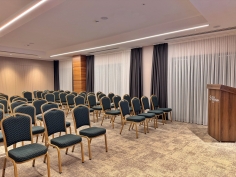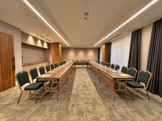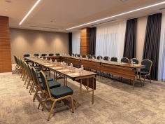 75 m² alana sahip Farabi Meeting Room, esnek düzen seçenekleriyle her tür toplantı ve etkinliğe uyum sağlar. Geniş, aydınlık ve modern tasarımıyla konforu ön plana çıkaran salonumuz;