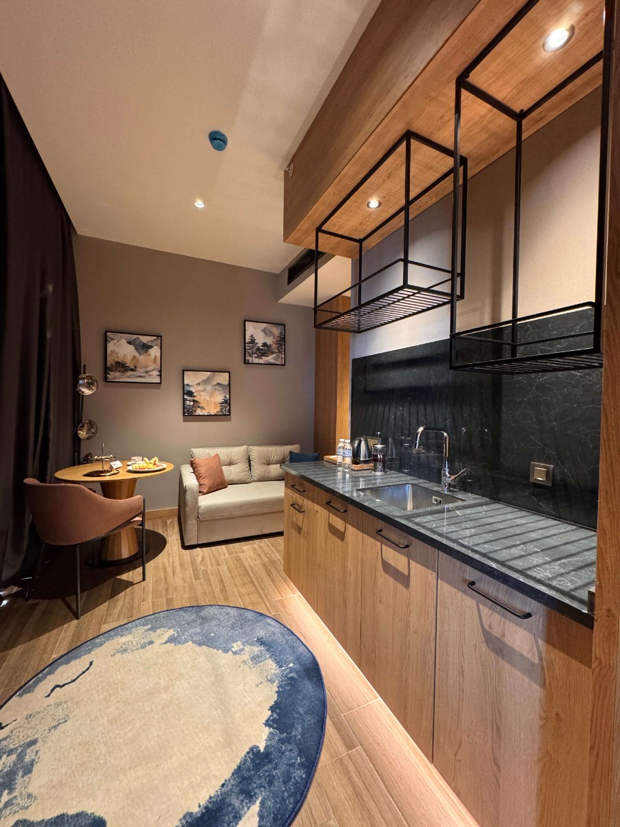 38 m²’lik geniş kullanım alanı ile ev rahatlığını modern otel konforu içinde sunar; ferah yerleşim ve ayrı yaşam bölümü sayesinde konaklamanızı kişisel bir deneyime dönüştürür. Oturma ve yatak odasının tamamen ayrı tasarlanması, uzun konaklayanlar ve iş seyahati yapanlar için ideal bir özel alan yaratır. -